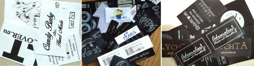 - wszywki jedno i WIELOKOLOROWE, oraz tkane (żakardowe) - jako jedyni na Allegro drukujemy wszywki satynowe aż w 12 kolorach!