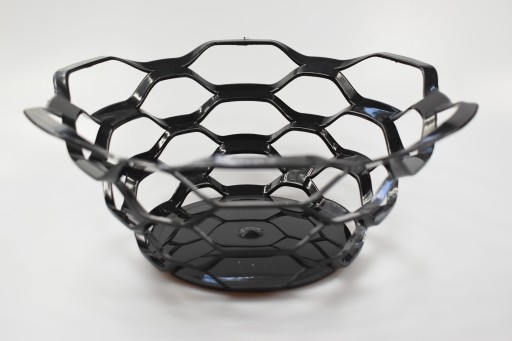 Czarna, wykonana z tworzywa.Bardzo elastyczna, pojemna. Ma siateczkowy wzór origami, co pozwala owocom lub warzywom oddychać, co także jest dodatkowym atutem ozdobnym produktu. Znakomicie sprawdzi się na blacie kuchennym jak i na stole.
