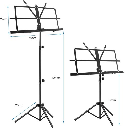 Regulacja wysokości od 35,5CM do 122CM. Stojak na nuty MARTISAN wyposażony jest w elastyczne pokrętła, które umożliwiają łatwą regulację wysokości w zależności od potrzeb. Całkowicie złożona podstawa ma tylko 45CM, co ułatwia przechowywanie. Waga stojaka: 1kg, lekka i przenośna.