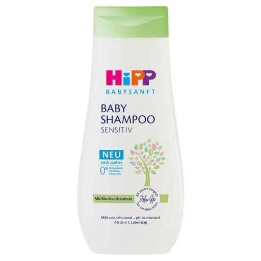 Teraz bardziej miękki i bardziej zrównoważony niż kiedykolwiek. Szczególnie łagodny szampon dla dzieci firmy HiPP Babysanft myje i pielęgnuje wrażliwą skórę głowy i cienkie włosy już od pierwszego dnia życia – pH neutralne dla skóry. Zachowuje naturalny kwasowy płaszcz ochronny skóry, a także nie szczypie w oczy. Szampon nadaje się również do skóry skłonnej do neurodermitów, a formuła nie zawiera mikroplastików ani rozpuszczalnych w wodzie, czysto syntetycznych polimerów.
