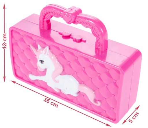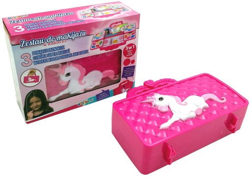 Rewelacyjny zestaw kosmetyków do makijażu w składanej walizeczce z wizerunkiem jednorożca dla małej damy.