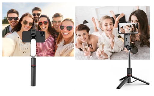 Profesjonalny kijek przeniesie wszystkie zdjęcia na nowy poziom. Idealny do selfie, zdjęć grupowych, pełnych przygód podróży, vlogowania, filmów na YouTube, podcastów, transmisji na żywo na Facebooku i Instagramie oraz wideo-rozmów. Jego długość, możliwość postawienia jako statyw, załączona lampa led, stawiają go na pierwszym miejscu pod względem możliwości jego użytkowania