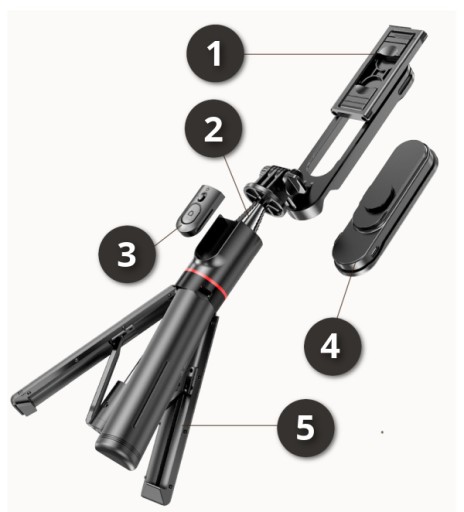 - Pilot sterujący będący elementem zestawu może zostać zarówno podpięty pod samego selfie sticka, jak również może służyć jako oddzielny element zestawu, np. w przypadku wyzwalania zdjęć z odległości.