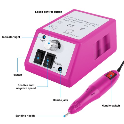 Prędkość tego produktu można regulować od niskich wibracji do dużej prędkości, aby uzyskać płynną i długotrwałą pracę, odpowiednią do profesjonalnego zdobienia paznokci.