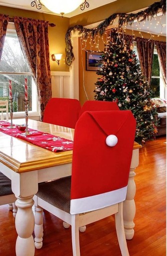 Okres świąt to wielki czas przygotowań dla każdego. Chcemy, by nasz dom prezentował się magicznie i wyjątkowo. Jednym z takich niecodziennych elementów wystroju mogą być pokrowce na krzesła. Prezentują się bardzo ciekawie i uroczo zakończone białym, puszystym pomponikiem. Są łatwe w utrzymaniu i przechowywaniu co jest sporym plusem w czasie świąt. Warto je mieć.