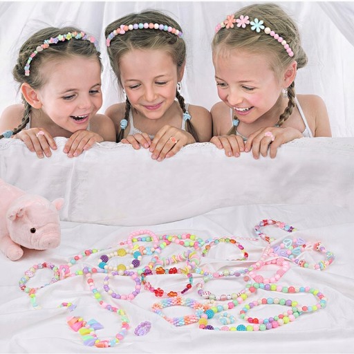 Zestaw do robienia bransoletek - jest to super kreatywny zestaw koraliki dzięki nim będziemy mogli wyczarować kolorowe bransoletki, naszyjniki, opaski do włosów, figurki i wiele innych cudownych rzeczy. Wiele pomysłów wzorów oraz instrukcji pokazowych filmików znajdziecie w serwisie na YouTube. Zestaw zapakowany jest w praktyczne pudełko - organizer z przegródkami który umili nasze prace ręczne. Zestaw zawiera koraliki, koraliki z literkami które umożliwiają nam tworzenie np. imion, są też koraliki w różnych kolorowych kształtach. W zestawie są też i inne narzędzia pomocne do robienia bransoletek