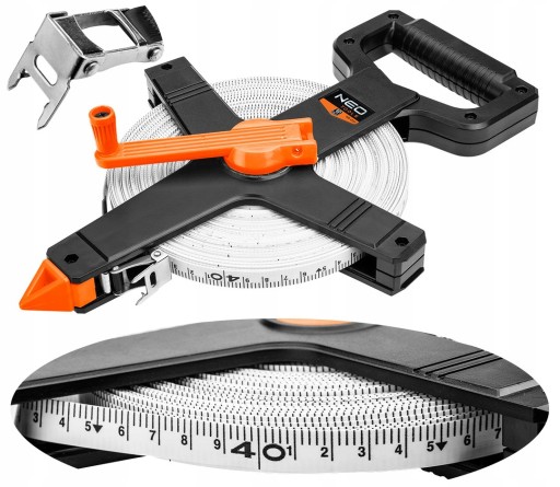 ИЗМЕРИТЕЛЬНАЯ ЛЕНТА NEO ИЗМЕРИТЕЛЬНАЯ МЕРА ИЗ СТЕКЛОСТЕКЛА ГЕОДЕЗИАНСКАЯ 50М В РУКАНЕ