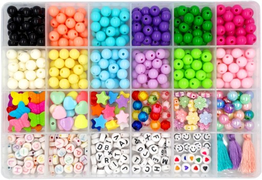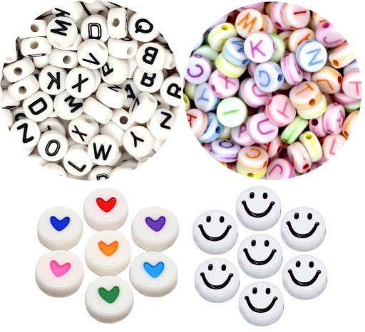 - Koraliki literki, serduszka i uśmiechy