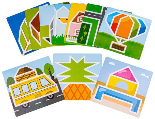 Gra zawiera łącznie 10 kart z różnymi obrazkami, dzięki czemu zabawa nie znudzi się szybko.