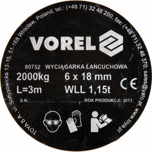 VOREL PRZYCIĄGARKA ŁAŃCUCHOWA 2T 80752