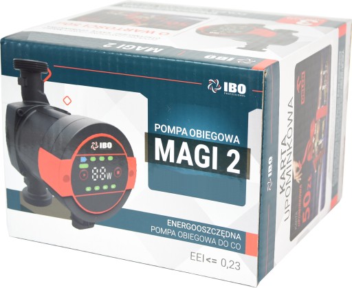 Pompy obiegowe serii MAGI 2 wyposażono w silnik z magnesami trwałymi i regulator różnicy ciśnień, które automatycznie i stale dostosowują wydajność pompy w celu zaspokojenia rzeczywistych potrzeb systemu. Panel sterowania pompą został umieszczony na szczycie silnika, co ułatwia obsługę przez użytkownika. Na jego tarczy wyświetlany jest bieżący pobór energii elektrycznej. W komplecie z pompą znajduję się komplet śrubunków wraz z adapterem do podłączenia przewodu.