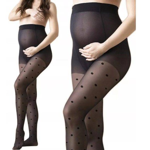Uroczy wzór kropeczek na rajstopach to intrygująca odmiana w codziennej garderobie kobiety w ciąży.