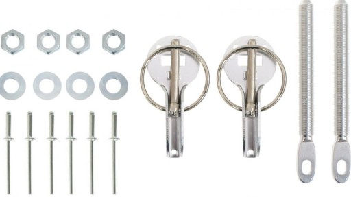Uniwersalne zapinki do wykonane z aluminium. Mogą być zastosowane do maski, klapy, zderzaka, itp.