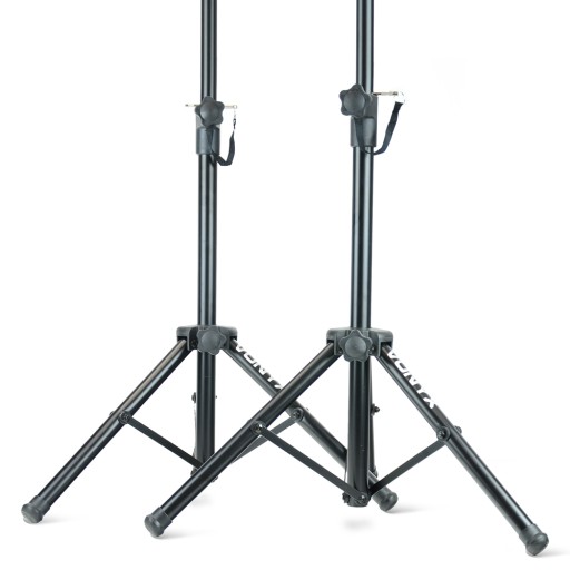 - Zestaw 2 kompaktowych, przenośnych i łatwych do ustawienia stojaków kolumnowych
