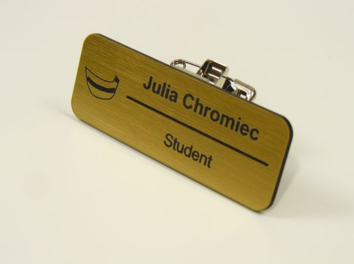 Identyfikator wykonany jest z ozdobnego laminatu grawerskiego o grubości 1,6 mm.