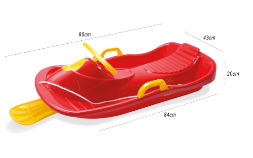 Sprawiają, że zabawa na śniegu jest o wiele przyjemniejsza! Sanki są dostępne w 3 kolorach: czerwony, niebieski i czarny, a najważniejsze elementy typu kierownica, nartka sterująca i boczne hamulce są żółte.