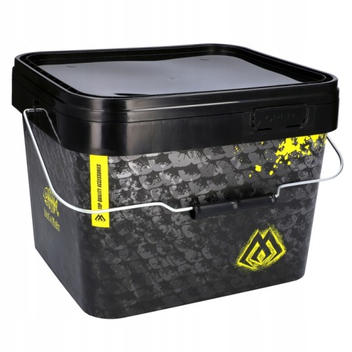 Uniwersalne wiadro na przynęty i zanęty. Wykonane z odpornego tworzywa, wyposażone w pokrywkę i metalową rączkę.