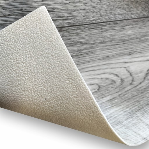 Elastyczna wykładzina o wzorze imitujący szare drewniane panele z mocno zaznaczonymi sękami w jasnym kolorze - wzór bardzo wyrazisty. Podłoga została wykonana z polyvinylchloridu znanego również pod krótszą nazwą PCV. Jest to wykładzina przeznaczona do użytku domowego. Grubości oferowanej wykładziny to 2,7 mm i warstwa użytkowa 0,15 mm, przeznaczona do pomieszczeń mieszkalnych o średnim natężeniu ruchu. Mocna - odporna na wgniecenia i załamania, oraz promienie UV.