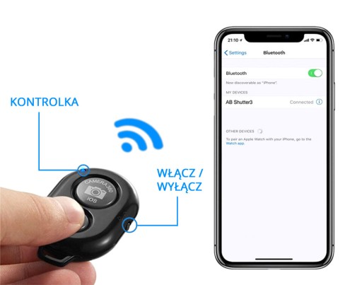 ✔ Pilot, dzięki któremu zrobisz zdjęcia zdala od telefonu. Urządzenie w prosty sposób, łączy się z telefonem za pomocą Bluetootha. Współpracuje z telefonami Apple Iphone (iOS) oraz telefonami z systemem Android takimi jak Samsung, Nokia, LG, HTC, SONY i inne