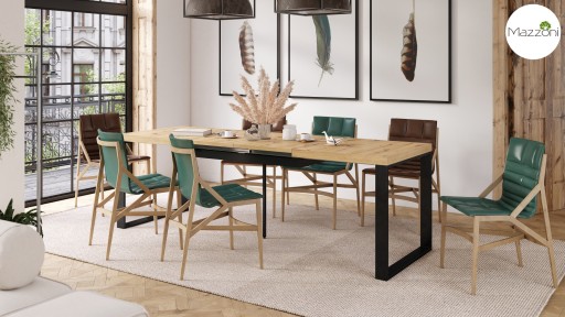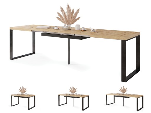 - Stół AVARI stworzony został w myśl loftowej zasady „mniej znaczy więcej”. Prosty w swojej konstrukcji, stylowy i solidnie wykonany, a dzięki trzem wkładkom długości 50 cm można znacząco powiększyć jego blat, co daje ogromne możliwości wykorzystania go zarówno podczas mniejszych, jak i większych uroczystości rodzinnych (pomieści nawet 10-12 osób). Jest to idealna propozycja dla osób ceniących sobie wygodę, wysoką jakość i trwałość na długie lata.
