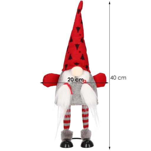 Uderzająca jest precyzja i dbałość, z jaką wykonany został nasza świąteczna koleżanka-krasnal o ujmującej powierzchowności. Każdy element dopełnia charakterystykę tego jowialnego, poczciwego gnoma: wysoka, miła w dotyku czapeczka, gęste kuce, okrągły nochal, wielgachne stopy, urocze rajstopy, zdobienia w postaci śnieżynki. Stabilna podstawa jest gwarancją, że skrzat będzie nieruchomo stał i nie ucieknie z wybranego dla niego miejsca.