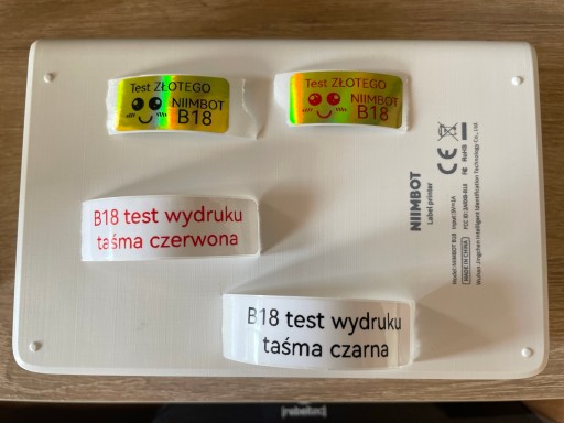 Do wydruku z użyciem B18 potrzebujesz - rolkę z naklejkami i taśmę termotransferową w wybranym kolorze. Taśma ma długość 160cm (ok 2.5 rolki naklejek).