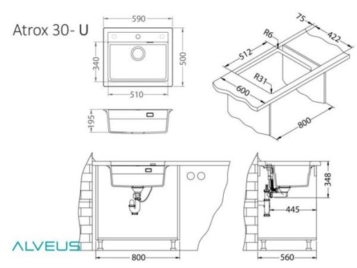 - Wymiary zlewozmywaka: 590 x 500 mm