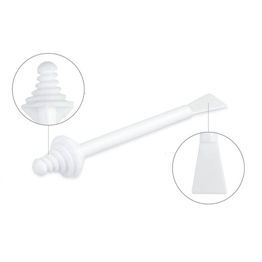 Dwustronna, okrągła głowica może być używana z woskiem depilacyjnym, aby usunąć brud do płaska głowica dotyczy małych obszarów twarzy, takich jak pod brwiami, i ustami, długość aplikatora 8 cm / 3,14 r 1 cm / 0,4in