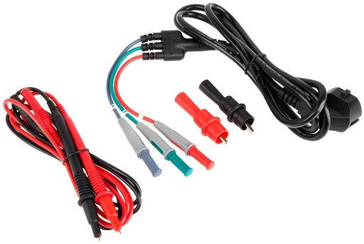 - W zestawie: baterie, przewody pomiarowe, specjalny przewód pomiarowy, krokodylki pomiarowe, etui, pasek