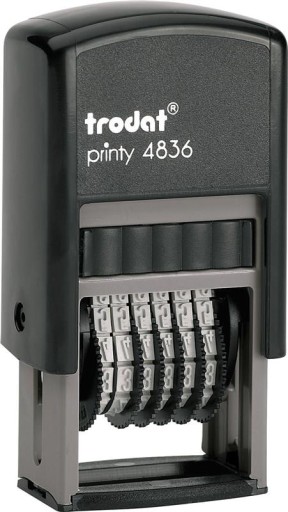 Datownik 4810 i Numerator samotuszujący Trodat 4836 z serii Printy w eleganckiej obudowie wyprodukowanej z odzyskanego plastiku oraz przy zmniejszonej emisji CO2. Przydatne w każdym biurze do stemplowania korespondencji firmowej, potwierdzenia odbioru gotówki, dostawy towaru itp. Datownik dostępny z datą w wersji ISO oraz polskiej. Wysokość cyfr/liter 4 mm.Numerator 6-cio cyfrowy. Wysokość cyfr 3,8 mm