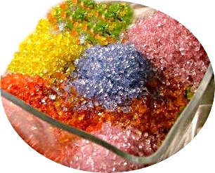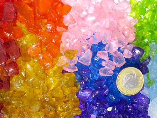 Aukcja dotyczy 1 kg granulatu szklanego barwionego na kolor jasno niebieski NR.8J , Fi 5-12 mm .