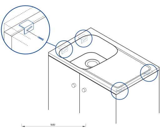 Oferujemy do sprzedaży elementy do montażu zlewozmywaków nakładanych: