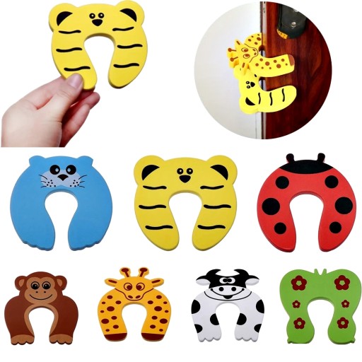 Blokada do drzwi w kształcie zwierzaków zapobiegająca przed ich zatrzaśnięciem.
