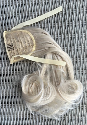 Włosy syntetyczne, wykonane z wysokiej jakości włókna termoodpornego.
