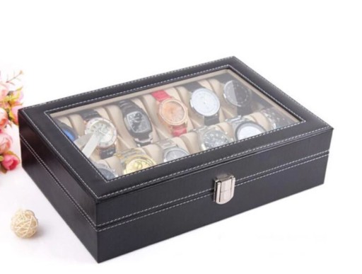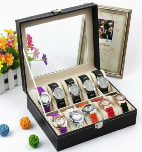 Elegancka i funkcjonalna szkatułka na zegarki. Wykonane z ekoskóry, wyłożone kremowym mięciutkim materiałem, posiada okienko oraz metalowy zamek.