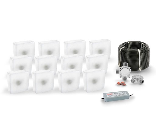 ZAWARTOŚĆ ZESTAWU: 12x LedColor ROCDECO; 1x Zasilacz LED; 50mb x Przewód ziemny