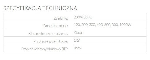 Długość grzałki zależy od jej mocy - wymiary podane w tabeli poniżej - kolor - moc - długość grzałki mm
