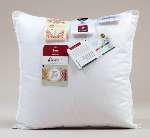 Poduszka jest trzykomorowa, co przekłada się na większą wysokość. Wykończona bizą.
