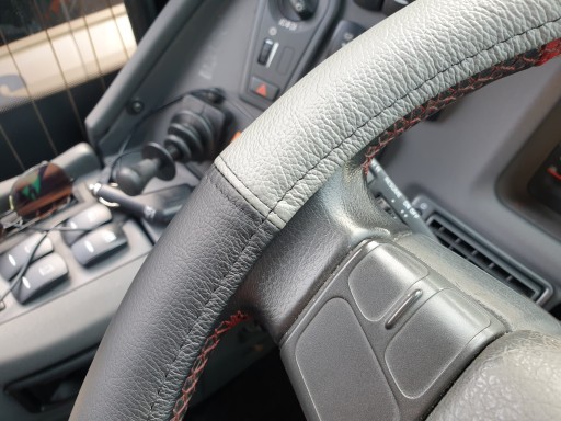 - sama skóra jest obszyta na podkładzie gumowym przez co nie ma możliwości, że pokrowiec w jakiś sposób będzie nam się przesuwał po kierownicy.