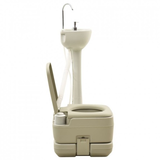 Ten przenośny zestaw, obejmujący toaletę i umywalkę, służy po to, by uczynić Twój kemping jeszcze wygodniejszym i przyjemniejszym! Toaleta zawiera 10-litrowy zbiornik na nieczystości, co pozwala na jej użytkowanie przez 2-3 dni przez osobę dorosłą. Posiada również 10-litrowy zbiornik z czystą wodą, umożliwiający spłukanie jej co najmniej 50 razy. 3-drożny system spłukiwania ułatwia usuwanie odpadów. Boczne zaczepy sprawiają, że odpinanie i mocowanie obydwu zbiorników jest łatwe. Boczny zawór chroni przed przeciekami i nieprzyjemnymi zapachami. Stanowisko do mycia rąk wyposażono w 3-litrowy dozownik mydła, wieszak na ręcznik i 17-litrowy zbiornik z czystą wodą. Można je obsługiwać bez użycia rąk poprzez naciśnięcie stopą na pompę nożną, aby doprowadzić strumień wody. Stojąca umywalka ma dwa wbudowane kółka ułatwiające transport.