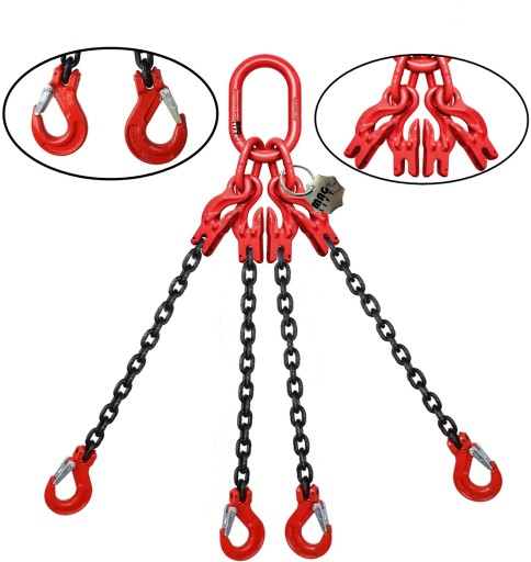 Zawiesie łańcuchowe 4-cięgnowe z ogniwem zespolonym wraz z hakami skracającymi zakończone hakami z zapadką - DOR: 2,36T/2 360KG
