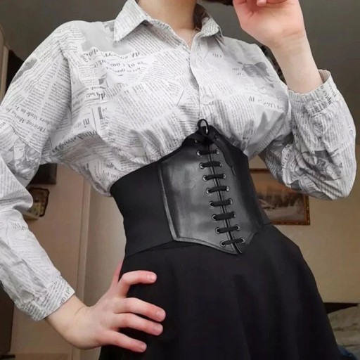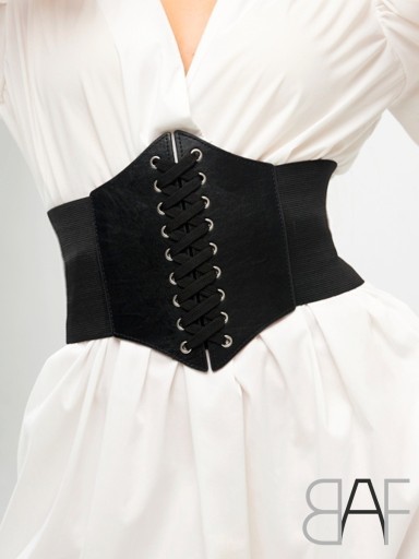 Gorset, szeroki pas z ozdobnym wiązaniem z przodu podkreślający linię talii.