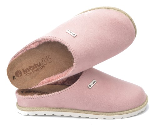 Wysokiej jakości kapcie damskie Inblu® wykonane z miękkiego ekologicznego zamszu podszytego ciepłym futerkiem.