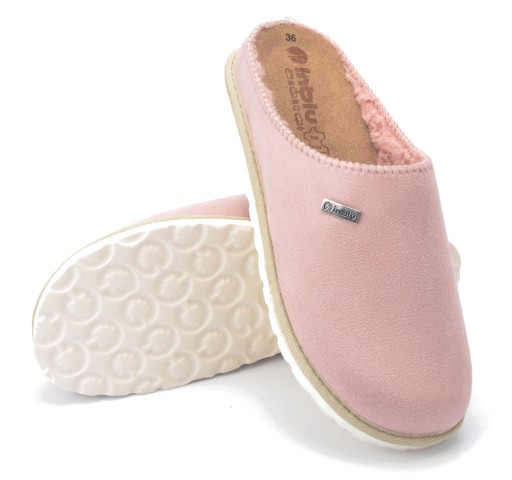 Wysokiej jakości kapcie damskie Inblu® wykonane z miękkiego ekologicznego zamszu podszytego ciepłym futerkiem.