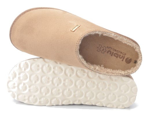 Wysokiej jakości kapcie damskie Inblu® wykonane z miękkiego ekologicznego zamszu podszytego ciepłym futerkiem.