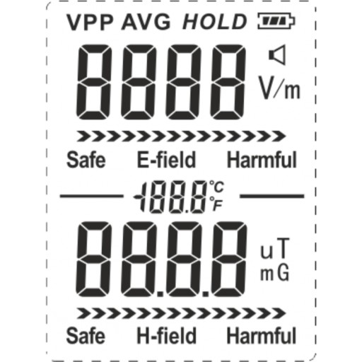 - Zakres: 1V/m-1999V/m (pole elektryczne) / 0.01μT-99.99μT (pole magnetyczne),