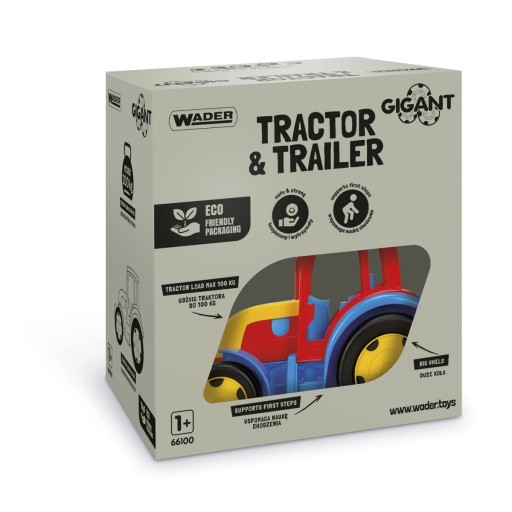 Wader 66100 Gigant traktor z przyczepą - masywny, duży traktor z serii Gigant Truck o udźwigu 100 kg w zestawie razem z przyczepą.