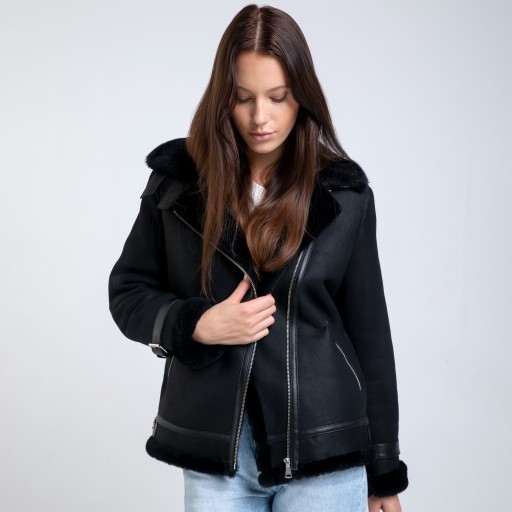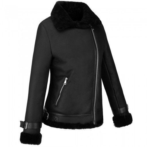 Skórzany kożuch w fasonie klasycznej, damskiej ramoneski. Bardzo ciepły, wykonany z wysokiej jakości skóry jagnięcej kożuchowej w czarnym matowym kolorze. Posiada dwie kieszenie zapinane na zamek. Całość ocieplana bardzo przyjemnym, miękkim włosiem. Kożuch zapinany na asymetryczny zamek. Wysoki, wykładany kołnierz w formie stójki z możliwością zapięcia pod szyją bądź wyłożenia na zewnątrz stanowi doskonałą ochronę przed mrozem i jest jednocześnie ozdobą kożucha.