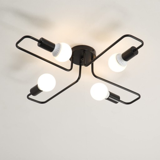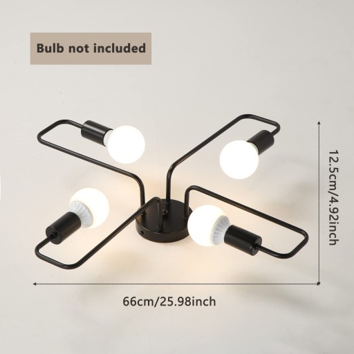 【Unique Design】: unikalny kształt z czterema światłami. Czarny to ponadczasowy kolor, połączenie stylu retro i nowoczesnego, doskonałe oświetlenie i dekoracja sprawiają, że lampa sufitowa bardziej przyciąga wzrok.