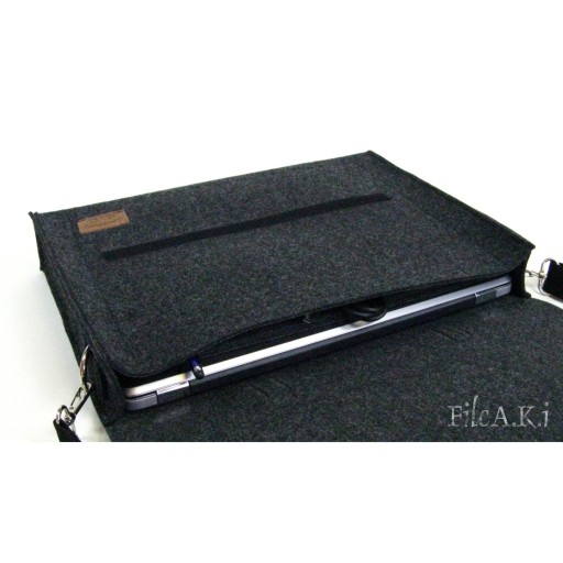 Uszyta z miłego w dotyku filcu poliestrowego, zapinana na rzep w kolorze torby, z dodatkami w kolorze niklu. Grubość filcu to około 4 mm, co stanowi bardzo dobrą ochronę przed uszkodzeniami i zarysowaniami. Filc jest stabilizowany przez co nie rozciąga się, torba zachowuje swój kształt. Torba jest bardzo lekka, jej waga to tylko około 400 gram.